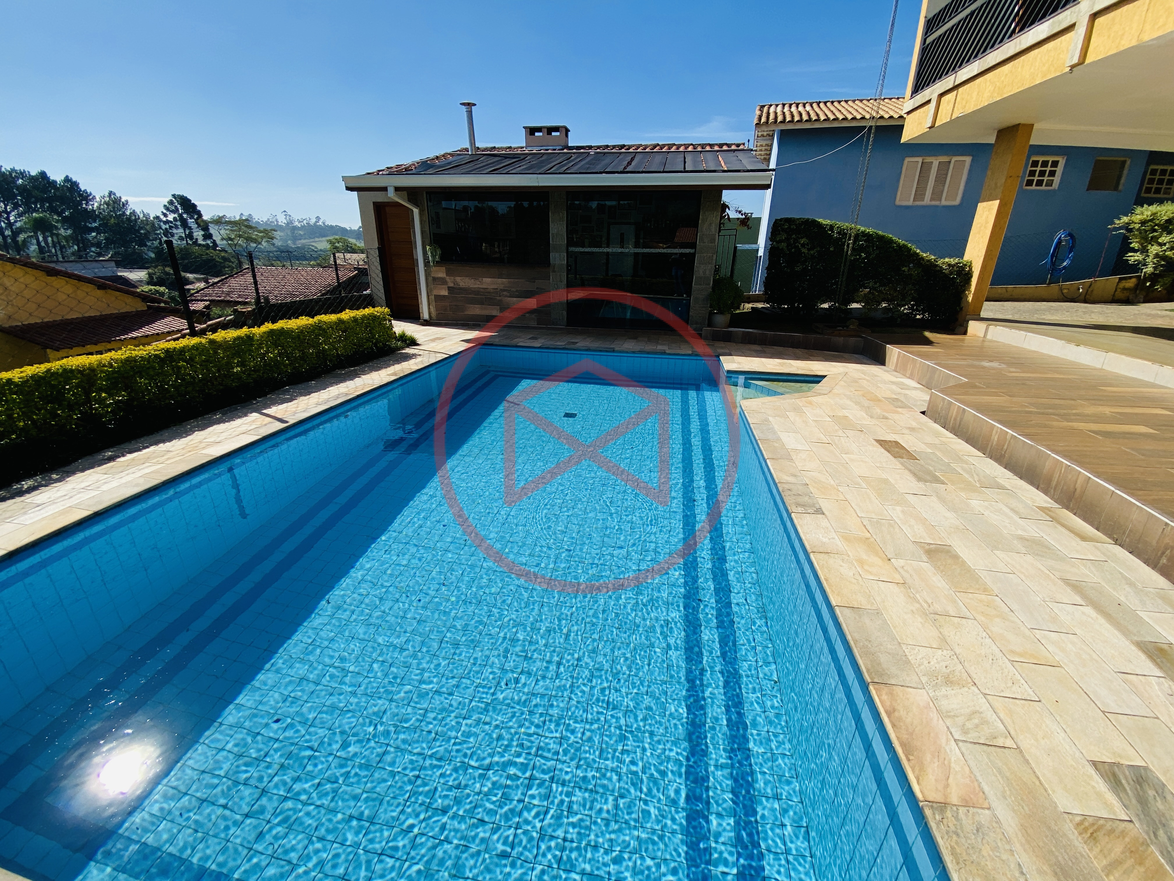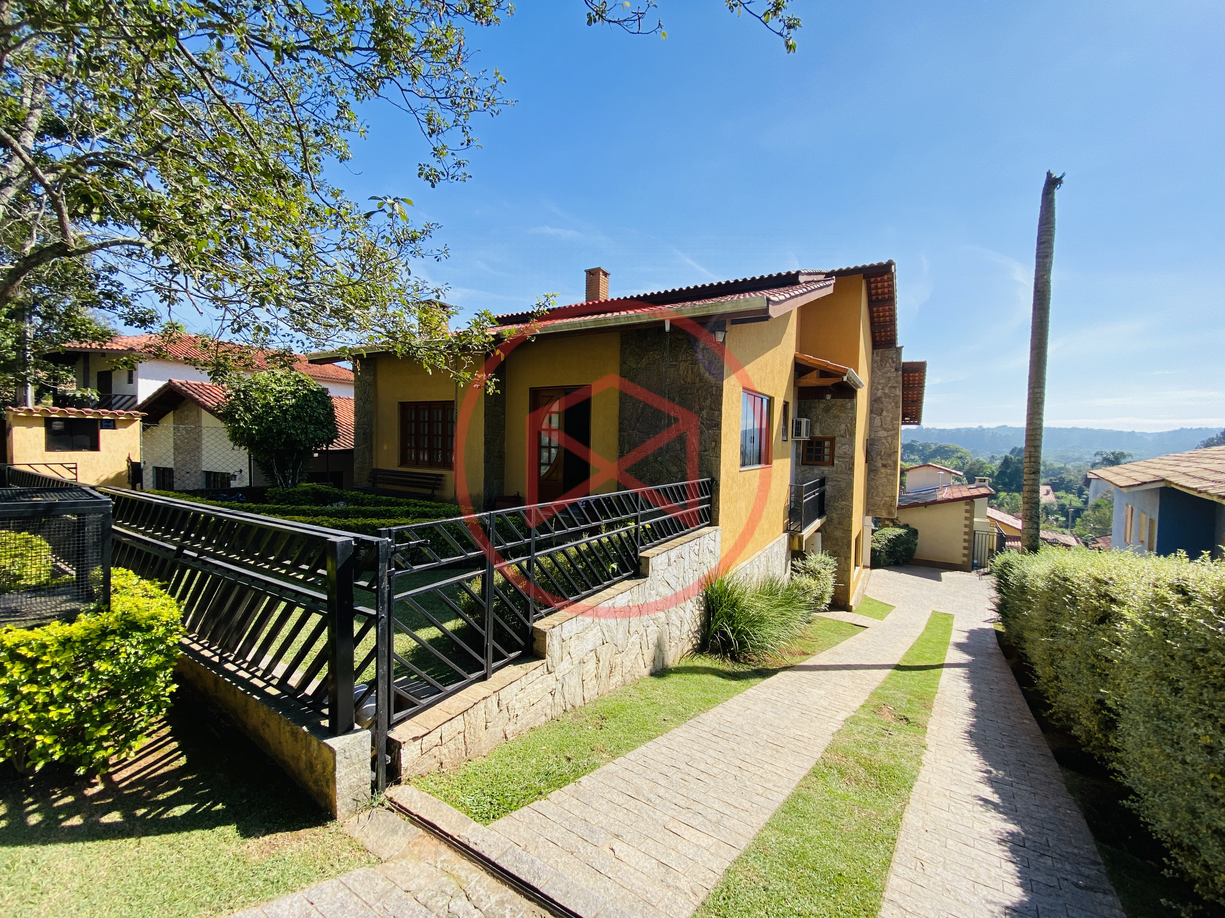 Condomínio de alto padrão, bem localizado de fácil acesso. Terreno 440 mts² ótima topografia e bem aproveitável, lugar privilegiado no condomínio. Área construída em 340 mts². Casa com 04 dormitórios, sendo 01 suíte com closet e hidro, sala com 02 ambientes, sendo sala de leitura e sala de estar com lareira, mais uma ampla sala de sala de tv com lareira na parte de cima, cozinha com copa, lavabo + wc social, área de serviço mais quarto de empregada com banheiro. Varanda com posibilidade de transformar em salão de jogos. Sala de Tv no andar inferior para uso da piscina. Espaço Gourmet com churrasqueira, forno de pizza e cozinha como suporte. Piscina em alvenaria, deck de pedra mineira. Banheiro externo. Lindo paisagismo moderno. Linda vista panorâmica. Espaço para estacionar 04 carros. Portão. Além das belas paisagens, o condomínio conta com ruas pavimentadas, calçadas e uma ótima infraestrutura de lazer, muito bem localizado na beira da pista principal de Ibiúna, com segurança 24 horas, portaria e ronda motorizada, clube social completo com piscinas adulto e infantil, restaurante, lagos para pesca, amplo quiosque para eventos, festas e jogos, churrasqueiras, quadra poliesportiva, playground, 03 quadras de tênis, 02 campos de futebol, praças, grande pomar comunitário, entre outros atrativos, conforto e segurança, somente 50 minutos de São Paulo, more com tranquilidade em lugar de beleza incomum, cercado por mata nativa e lindas residências, onde 70% são moradores, ideal para moradia e lazer.