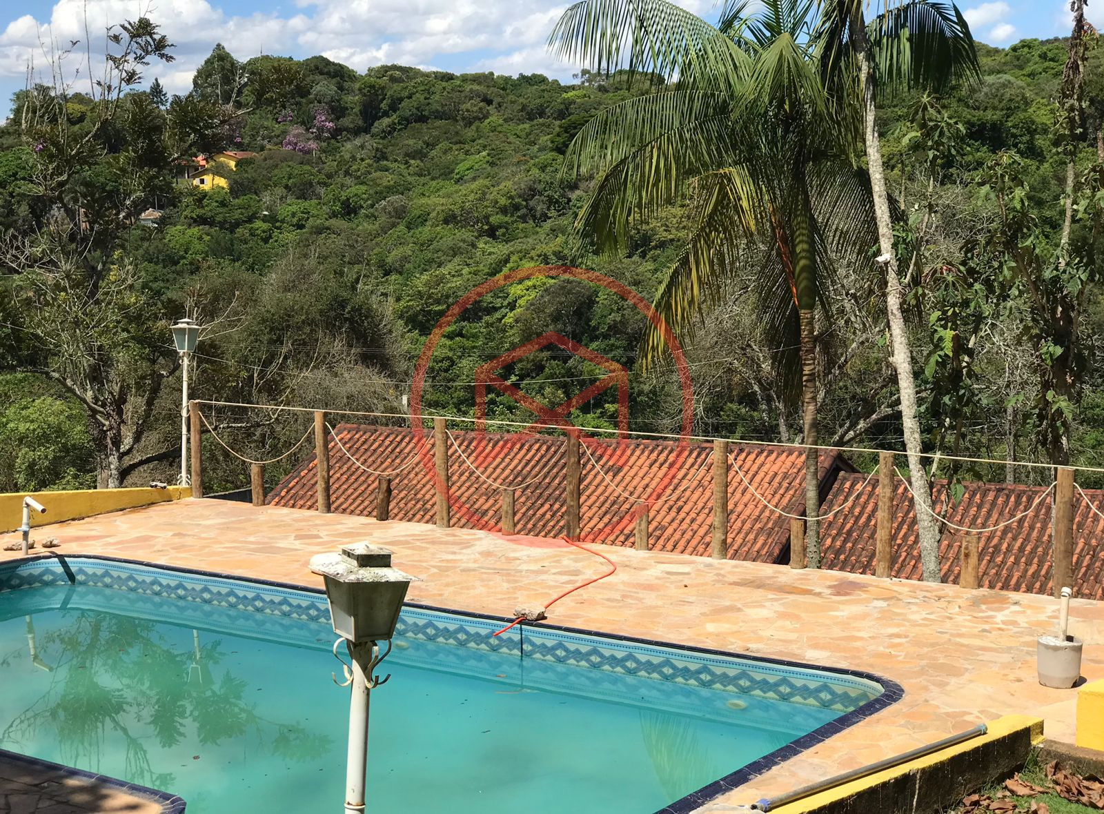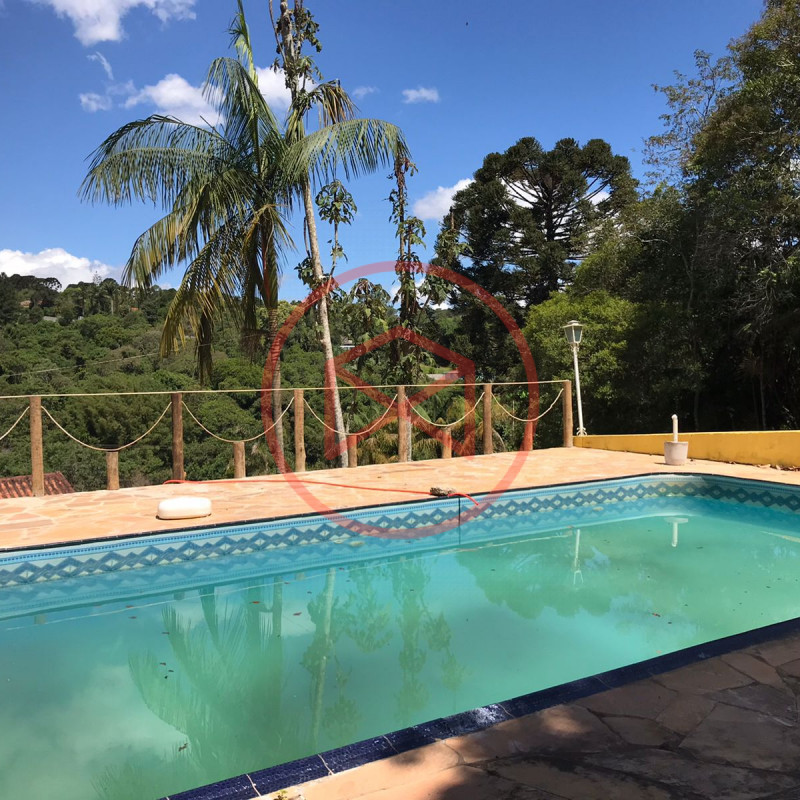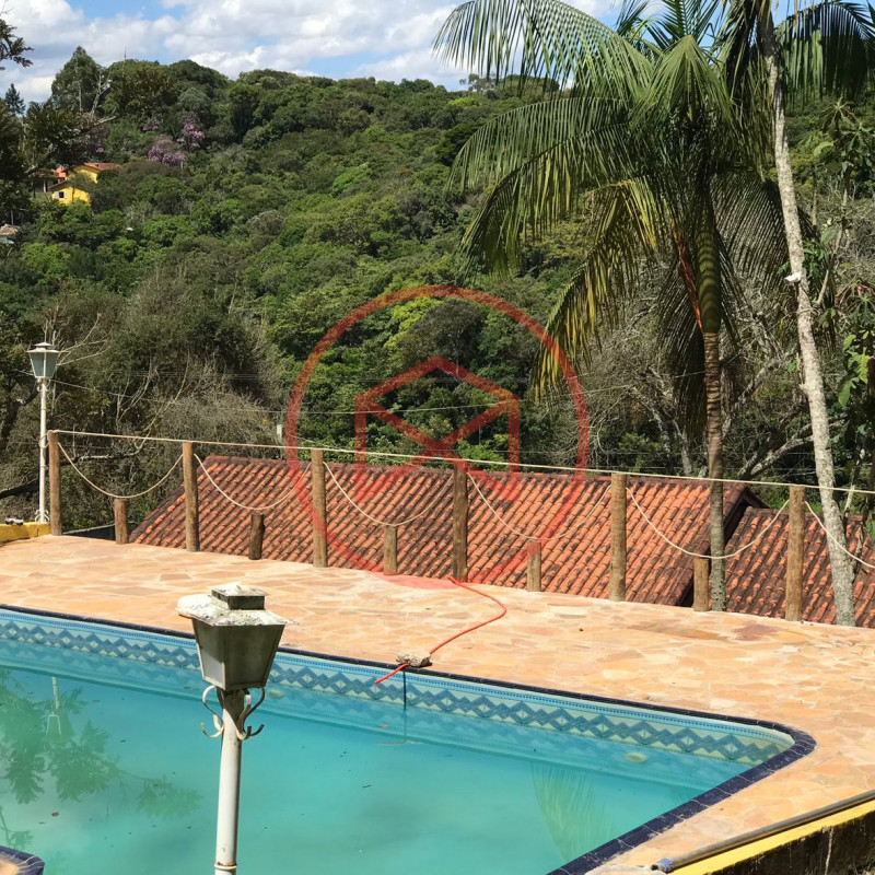 Terreno com 2.080 mts², toda monitorada por câmeras, área contruida em torno de 300 mts² são 3 casas sendo a casa principal com 2 quartos grandes sendo um com móveis planejados, sala ampla, cozinha com móveis planejados, banheiro social e lavanderia. 02 casas auxiliares compostas por quarto, cozinha americana, sala e banheiro. Propriedade toda gramada, 2 entradas sendo a principal com portão automático. Piscina em vinil com hidro e prainha com ponto para cascata, deck de pedra mineira, com linda vista panorâmica para a mata. Mini pomar, canil e galinheiro.