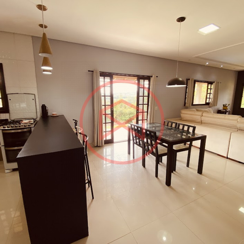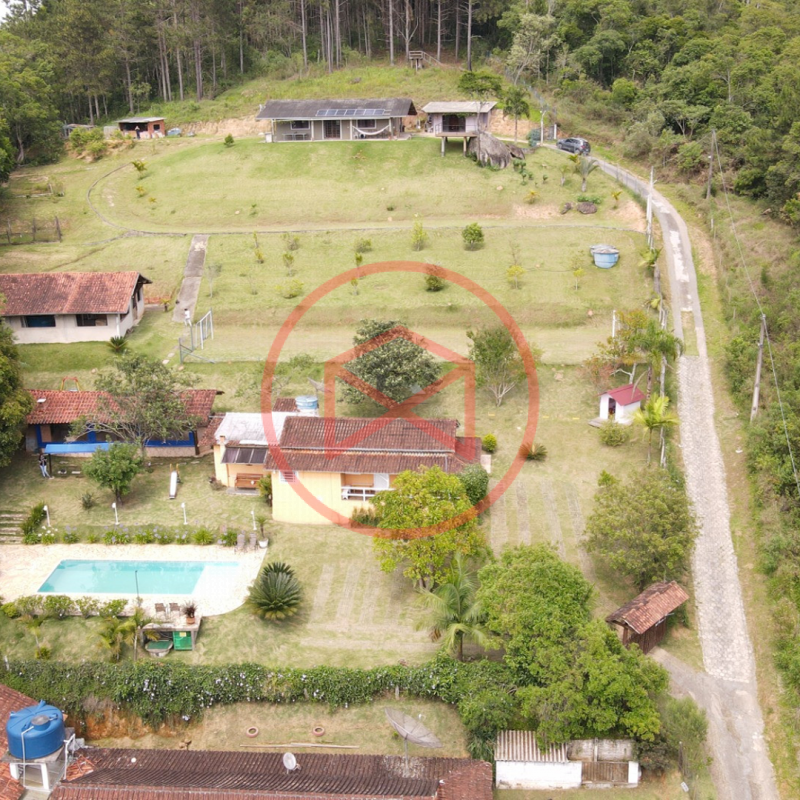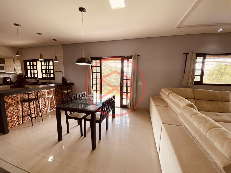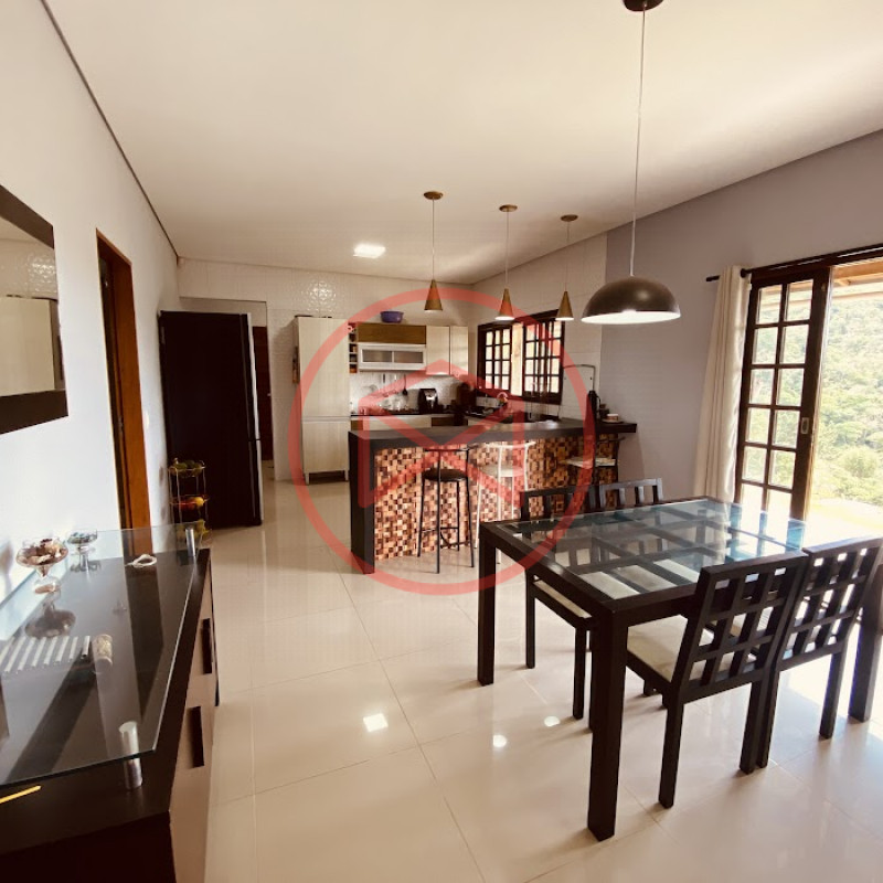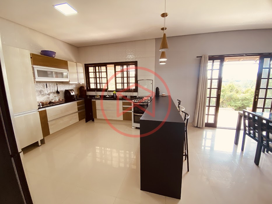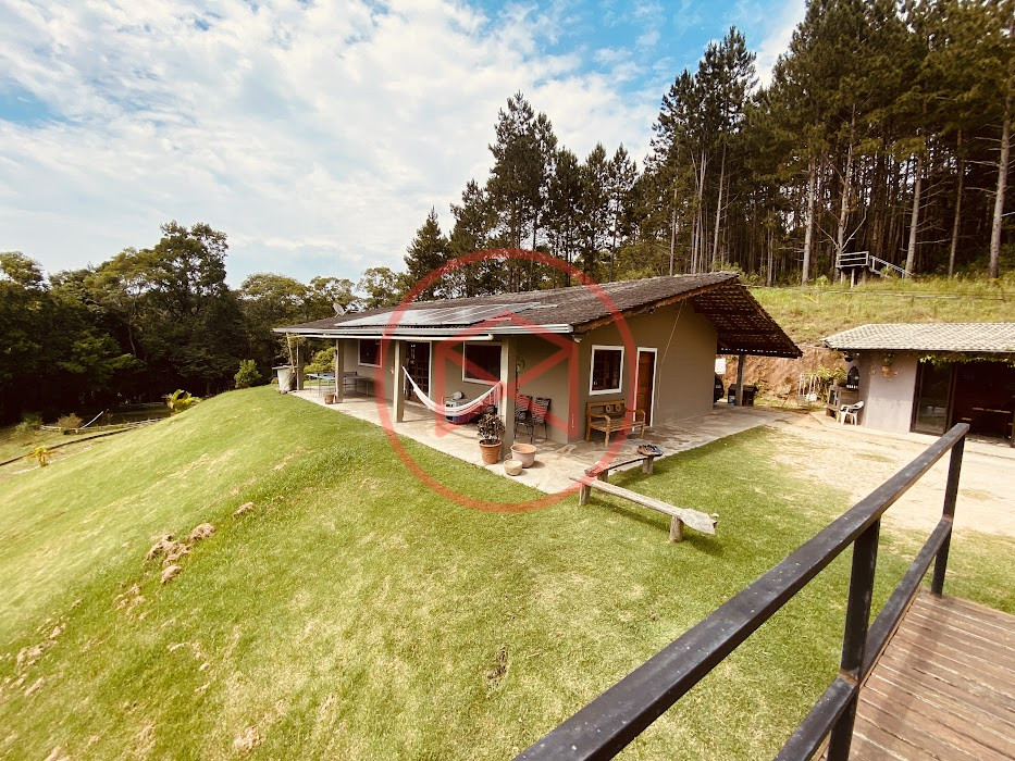 Apenas 300 mts de estrada. Lugar com linda vista panorâmica. Terreno 12.500 mts² boa topografia acima do nível da rua, bem aproveitável, 90% desmatado. Área construída em torno de 700 mts². Casa Sede com 3 suítes, sala de jantar com linda vista, sala de tv, cozinha estilo americano conceito aberto com móveis planejados, área de serviço e varandão. Casa de hóspedes com 2 quartos, sendo 1 suíte, sala, cozinha com copa, sala de tv, sala de estar, banheiro social, área de serviço e varanda. Espaço Gourmet com "trio-mineiro": churrasqueira, forno e fogão a lenha, pia como suporte e lavabo, salão de jogos/festa integrado. Piscina em vinil com prainha, deck de pedra natural e pequeno deck de madeira. Lago com nascente. Propriedade toda gramada. Horta. Pomar com árvores frutíferas. Bosque com árvores nativas. Campo de futebol. Galpão. Galinheiro. Canil. Playground. Espaço para estacionar em média de 10 carros. Totalmente cercado com alambrado e entrada padrão de chácara. Localizada apenas 30 minutos da cidade, telefone fixo e internet fibra óptica, chácaras vizinhas formadas por moradores e veraneios. Vale a pena analisar essa grande oportunidade.