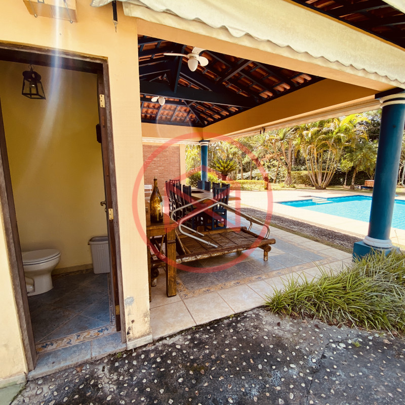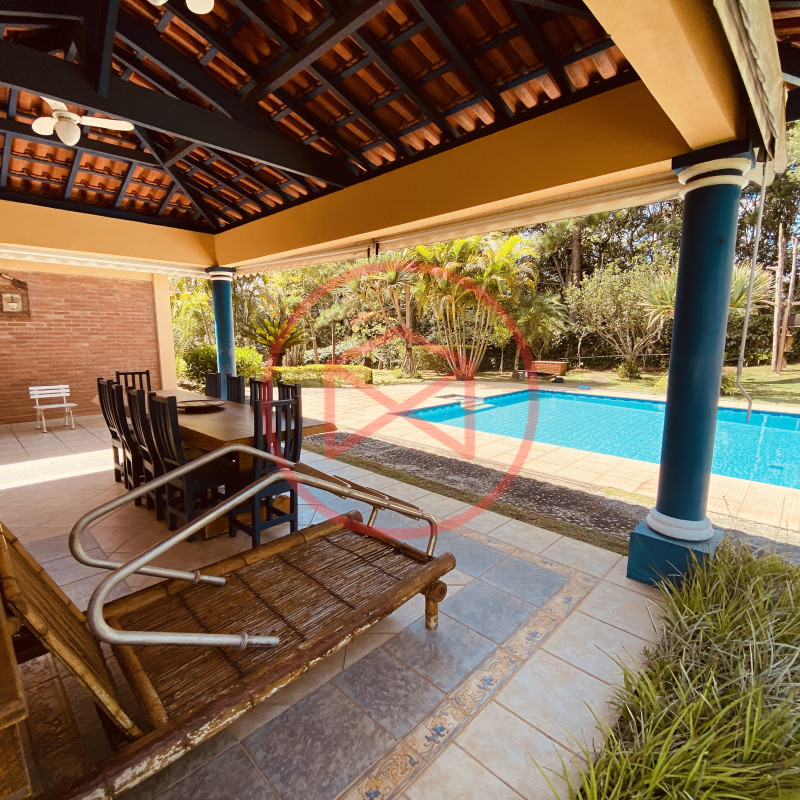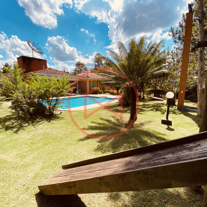 Área de terreno 1.955 mts², bem aproveitável e totalmente gramado, excelente topografia 90% plana com linda vista panorâmica. Área construída em 333 mts², acabamento fino e de boa qualidade, tudo bem conservado. Casa Sede em tijolinho a vista com 05 dormitórios, todos com armários embutidos, sendo 01 suíte com hidromassagem, hall de distribuição, ampla sala com 3 ambientes (sendo: sala de estar com lareira, sala leitura e sala de jantar) com iluminação naturral do jardim de inverno, + 01 ampla sala de TV, lavabo + 2 banheiros, cozinha e área de serviço + quartinho de empregada e banheiro. Amplo Espaço Gourmert com churrasqueira, forno de pizza e pia de apoio. Piscina em alvenaria, cascata de pedras, ducha, deck revestido com pedra natural Quartinho de Ferramentas. Playground. Diversas vagas para estacionar em média de 05 carros. Pomar. Lindo jardim com paisagismo contemporâneo e decorativo. Totalmente cercada com alambrado, cerca viva e entrada de chácara com total privacidade. Condomínio com segurança 24 hs, ronda e portaria, fácil acesso de frente para o asfalto, sede de administração, linha de lazer completa, com lago para pesca, quadra de tênis, quadra poliesportiva, praças, playground. Restaurante. Campo de Futebol. Campo de Areia. Ponto de ônibus. Vale a pena analisar essa grande oportunidade e desfrutar das belezas naturais que Ibiúna pode oferecer. Agende sua visita hoje mesmo!!!
