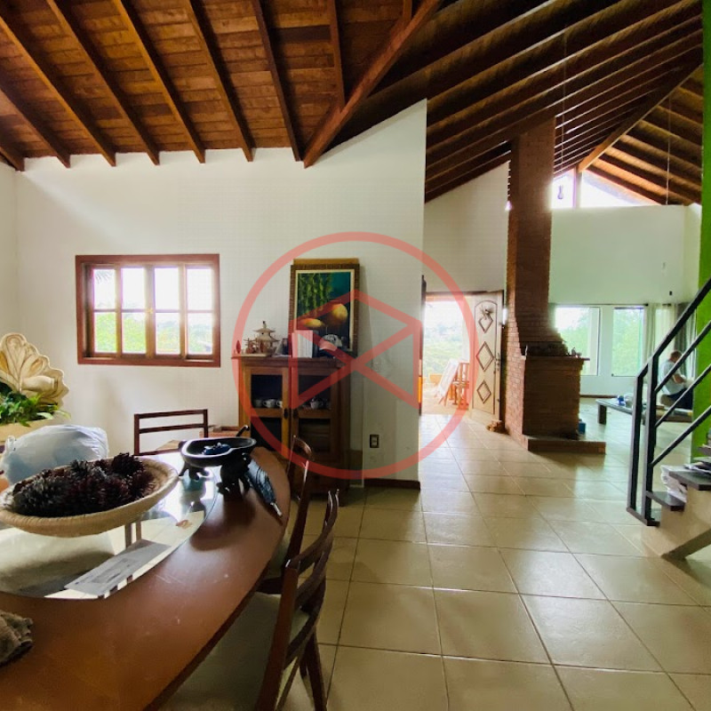 Terreno 846 mts² boa topografia, bem aproveitável e totalmente gramado. Área construída 450 mts². Casa Rústica Moderna com acabamento de boa qualidade, com 4 dormitório, sendo 1 suíte master com closet, 02 banheiros com aquecimento a gás, corredor de distribuição com rouparia embutida, sala com 3 ambientes, (sala jantar, sala de tv, estar com lareira), ampla cozinha com ilha central e encanamento para aquecimento a gás, lavabo, mezanino com escritório, área de serviço com despensa. Varanda. Jardim. Arborizada. Pomar. Canil. Poço. Filtros de tratamento de água. Caixa d'água extra. Garagem para 02 veículos. Condomínio localizado antes do Centro de Ibiúna, com segurança 24 hs, portaria e ronda, fácil acesso de frente para o asfalto, ótima infra estrutura, luz, telefone e internet, linha de lazer completa, campo de futebol, lagos para pesca, salão para eventos, playground, trilha ecológica, academia e praças. Excelente Oportunidade!!!