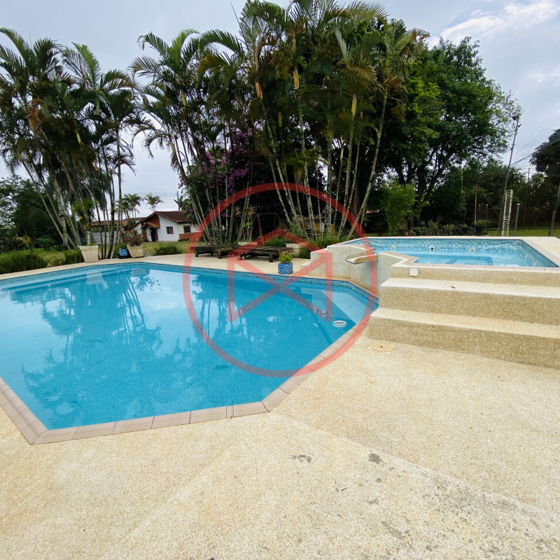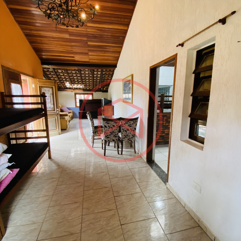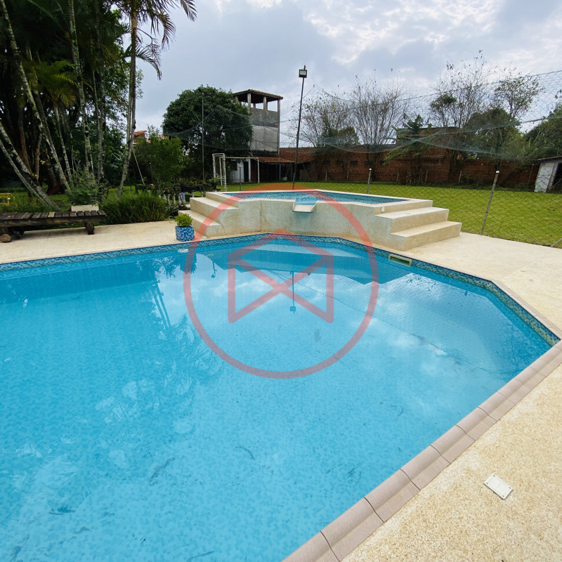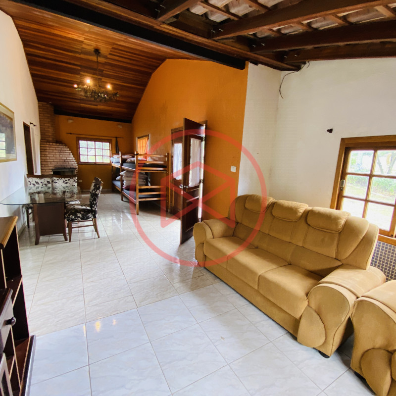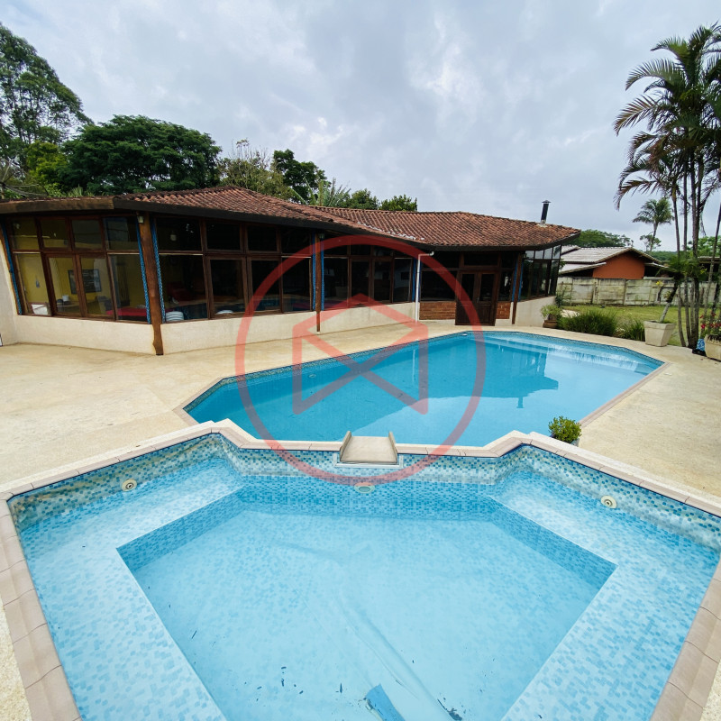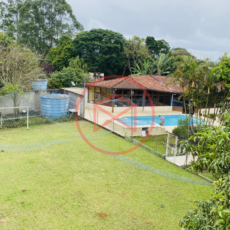 Terreno 3.000 mts² ótima topografia 100% plano, aproveitável e totalmente gramado. Área construída 480 mts². Casa Estilo Colonial com 3 dormitórios, sala de jantar, sala de tv com lareira, cozinha americana , banheiro e Área de Serviços. Casa de Caseiro com 01 dormitório, sala, cozinha e banheiro. Piscina em vinil com prainha elevada com cascata e deck antiderrapante. Amplo Salão de Jogos conjugado com Salão de Festas todo fechado em vidros com churrasqueira, forno de pizza, fogão a lenha, Lareira, cozinha , vestiário masculino e feminino, Sauna a vapor. Parte externa: Campo de Futebol iluminado, cercado com tela. Playground completo para crianças. Galinheiro. Viveiro. Canil com 4 baias. Capela. Mirante com linda vista de todo o condomínio. Quartinho de Ferramentas, Home Office. Amplo espaço de estacionamento. Reservatório de água com capacidade de 4 mil litros. Lindo Jardim com paisagismo moderno e decorativo, Pomar com diversas árvores frutíferas já produzindo. Horta. Lote todo cercado com muro, alambrado e entrada padrão de chácara, privacidade total. Condomínio com segurança 24 hs, portaria e ronda, próximo do Centro de Ibiúna.