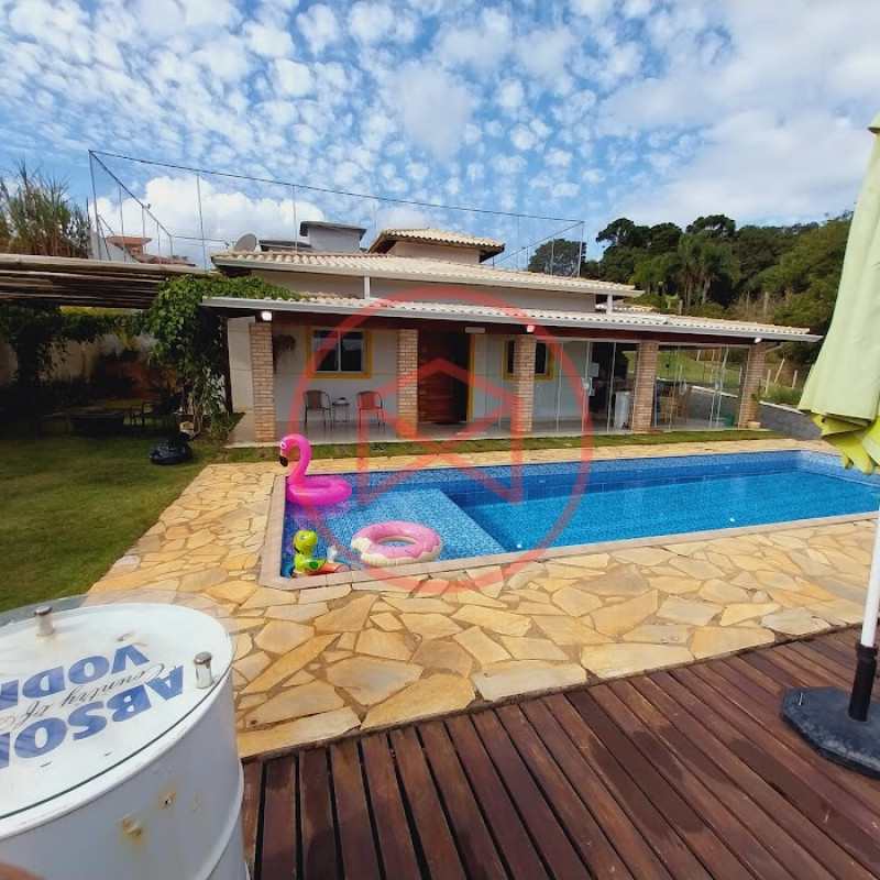 Terreno 1.000 mts², totalmente gramado, lugar privilegiado lugar alto com linda vista panorâmica de montanhas e mata nativa. Área construída com 160 mts², tudo de ótima qualidade, bom gosto . Casa com 3 dormitórios sendo 1 suíte, sala de estar , cozinha conceito aberto estilo americano, banheiro social. Espaço gourmet com churrasqueira e pia de apoio. Piscina em vinil, cascata e amplo deck de pedra mineira e madeira. Pomar com diversas árvores frutíferas. Lindo paisagismo moderno. Mini campinho de futebol ou volei. Espaço para estacionar 4 veiculos. Pergolado com espaço luau. Chácara totalmente cercado com muro e entrada padrão de chácara. Condomínio com boa infra-estrutura, fácil acesso, apenas 8 km do Centro de Ibiúna, ruas asfaltadas, iluminação publicas, telefone fixo e internet fibra, água encanada da Sabesp, linha de lazer como campo de futebol, quiosque com churrasqueira, playground, academia ao ar livre. Vale a pena analisar essa oportunidade!!!