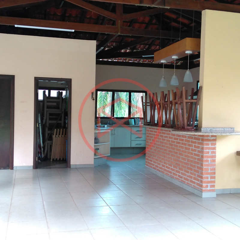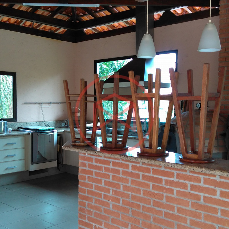 Área de terreno 1.600 mts², 100% aproveitável, ótima topografia e totalmente gramado. Área construída: 350 mts², tudo de ótima qualidade , muito bem conservado e de bom gosto. Casa estilo Casa de Campo. Parte do Mezanino: Hall de entrada com sala de leitura, 5 suítes amplas, Parte Superior: com 4 amplas salas sendo sala de jantar, sala de tv, sala de estar com lareira e sala de reunião, cozinha grande com copa, lavabo e área de serviço. Piso Inferior: Escritório, salão de jogos com sala de tv, lavabo, 1 suite, sala de estar envidraçada com acesso a varanda, 1 suíte externa para hospedes com sala íntima, toda a casa com aquecimento a gás. Lavanderia. quartinho de ferramentas, Piscina em alvenaria, deck de pedra goiania. Amplo espaço Gourmet com churrasqueira, forno de pizza e cozinha integrada. Wc social, quartinho de despejo. Casa Cinematográfica!!! Campo de futebol, Quadra de basquete. Quartinho de ferramentas. Diversas vagas para estacionar, sendo 2 vagas cobertas. Paisagismo moderno e decorativo ao redor da chácara. Quiosque. Poço artesiano com reservatório de água. Totalmente cercada com alambrado e cerca viva, total privacidade. Condomínio com segurança 24 hs, ronda e portaria, clube com piscina adulto e infantil, restaurante, vestiários, campo de futebol, quadras de tenis, mini golf, bicicross, lago, quiosque para festas, fácil acesso de frente para o asfalto. Documentação 100%, Escritura e Matricula. Ideal para moradia e/ou veraneio.