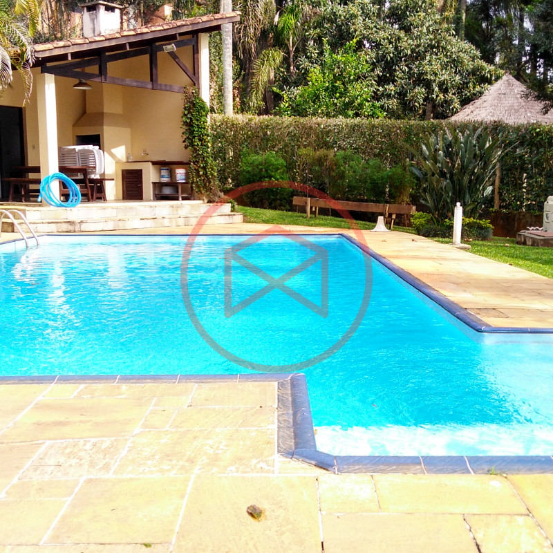 Condominio de Alto Padrão. Terreno 1.200 mts² boa topografia, totalmente gramado lugar privilegiado. Linda vista panorâmica. Área construída 317 mts², tudo de primeira qualidade. Casa Sede Estilo Colonial, com 4 dormitórios, sendo 2 suíte, 1 lavabo, banheiro social, sala com 2 ambientes, sendo sala de jantar e sala de estar com lareira, mezanino com sala de TV, cozinha, despensa, área de serviço, varanda, sótão. Espaço Gourmet com churrasqueira, cozinha. Piscina em alvenaria 5x11 com prainha e hidro, Sauna seca, vestiário e banheiro. Árvores frutíferas. Garagem para diversos carros. Canil. Quartinho de ferramentas. Totalmente cercado com alambrado e cerca viva, entrada padrão de chácara. Condominio oferece clube, restaurante, pista de mini golf, quadras de tenis, etc. vale a pena analisar!