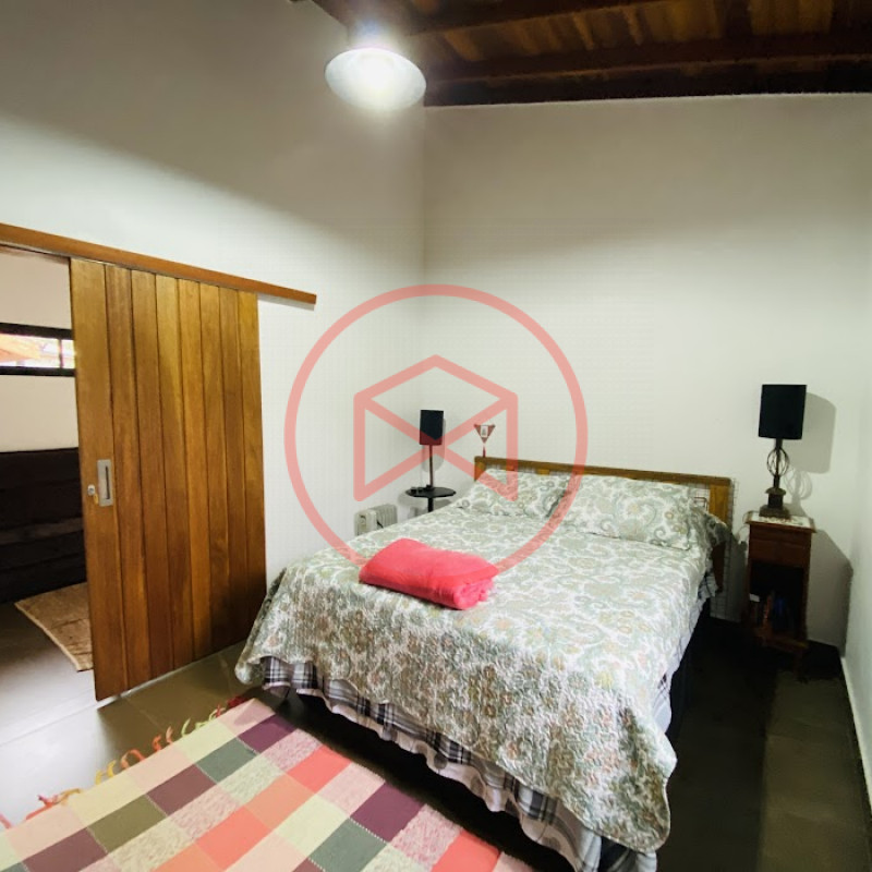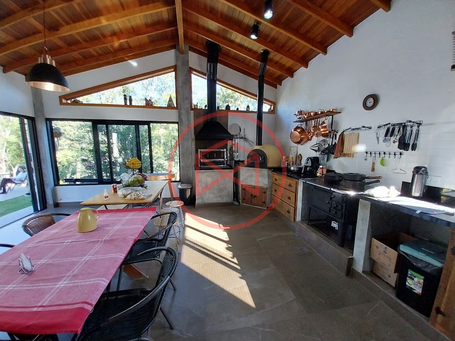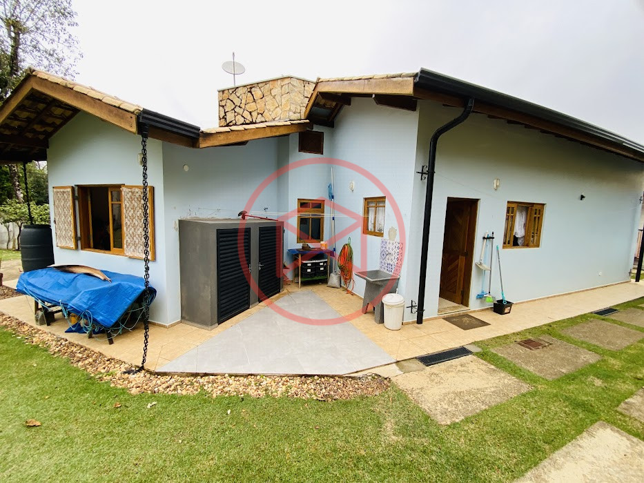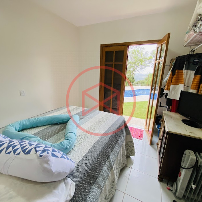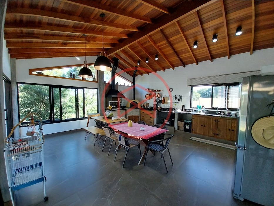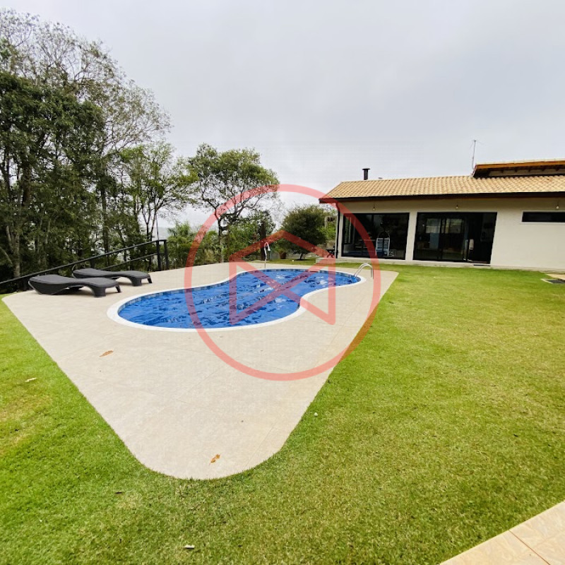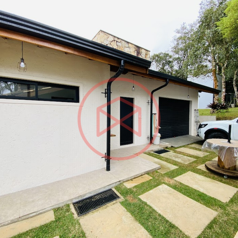 Terreno com 2.100 mts2 contendo 356,00 mts2 de área construída, Casa com 02 dormitórios sendo 01 suite com porta balcão voltada para a piscina e banheiro social, sala 02 ambientes (sala de jantar com lareira e sala de estar), lavabo, cozinha com móveis planejados, dispensa e área de serviço. Casa toda preparada para instalação de aquecimento solar/gás. Espaço gourmet com churrasqueira, forno de pizza, fogão a lenha, com cozinha completa e ampla bancada de mármore e móveis planejados, suíte para hóspedes e sala de TV. Aquecimento solar. Piscina 8 x 4 m em vinil aquecida recém reformada com iluminação interna controlada por controle remoto, deck de piso antiderrapante, cascata e ducha. Sauna seca elétrica automatizada. Banheiro externo. Playground. Redário. Fogo de chão. Quarto de depósito e canil com caixa d’água central de 5.000 litros. Caixa de água de recalque instalada próximo do relógio medidor de consumo com 5.000 litros e automação para bombeamento quando o nível da caixa superior (Depósito) estiver abaixo de 50% do volume. Toda as calhas de coleta de água dos telhados estão canalizadas o que permitirá a instalação de cisterna para reutilização da água. Pomar gramado com árvores frutíferas produzindo. Rampa de acesso com bloquetes sextavados até área das construções. Propriedade com muros e alambrados cercando-a e entrada padrão de chácara. Agende já sua visita!