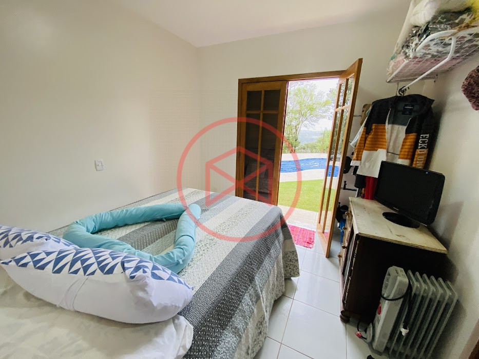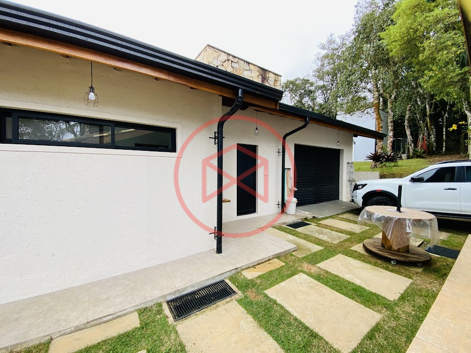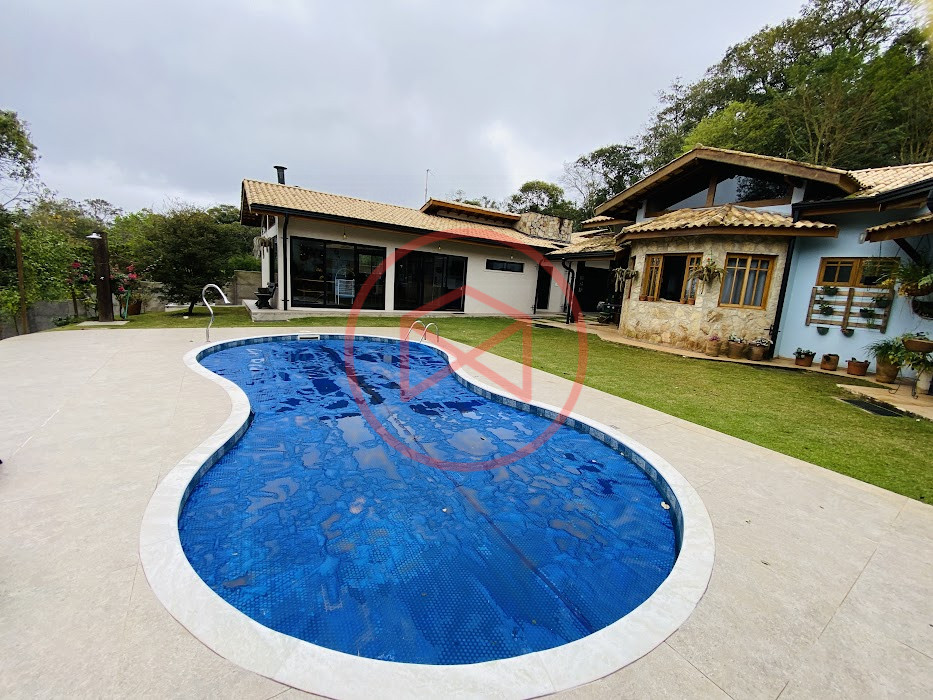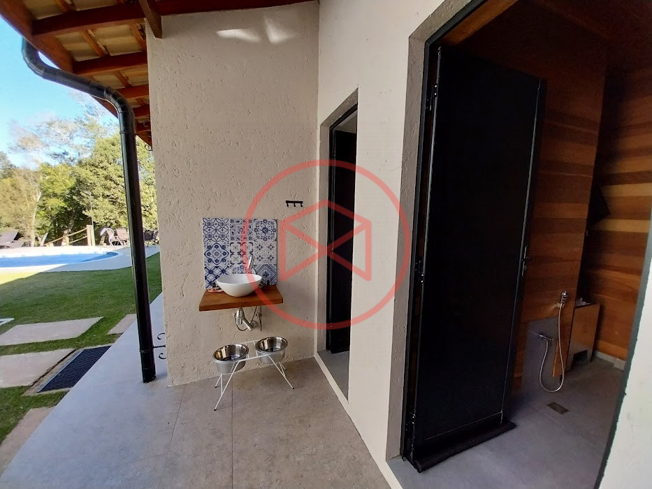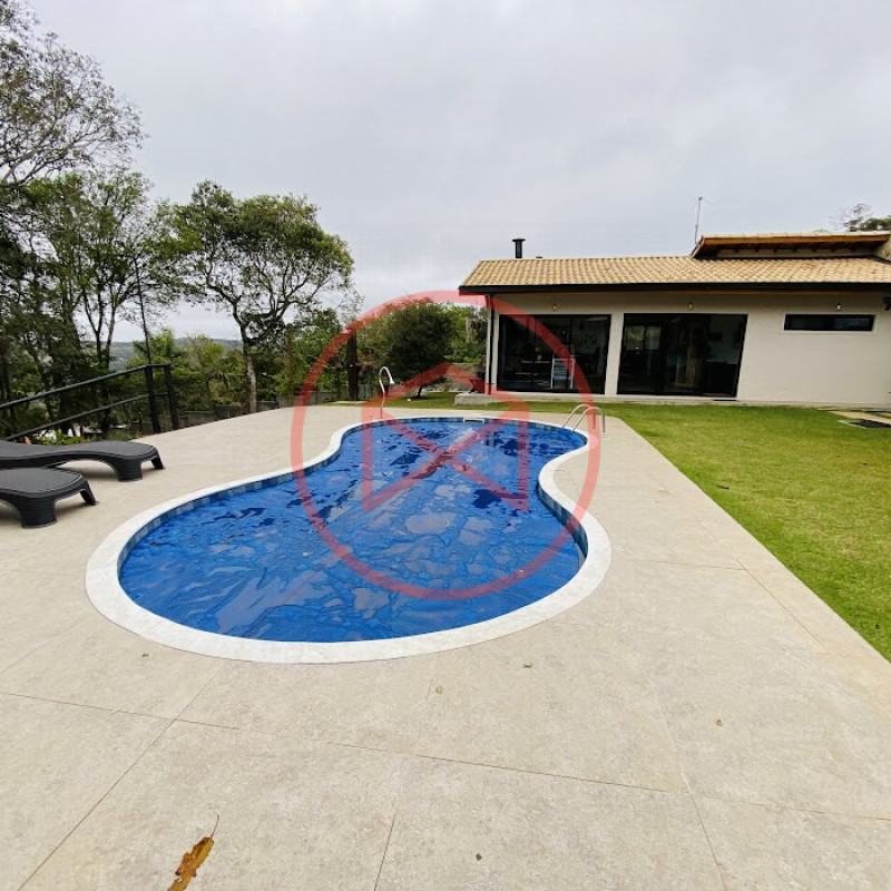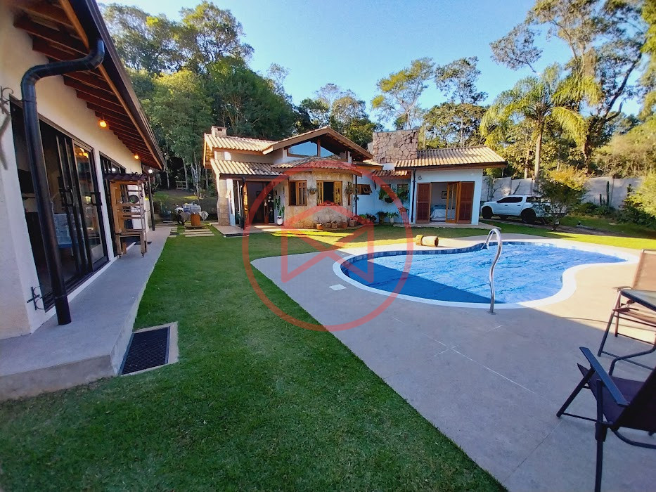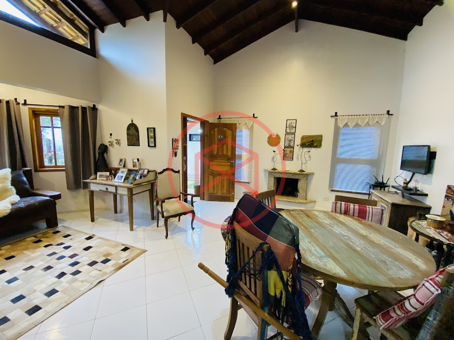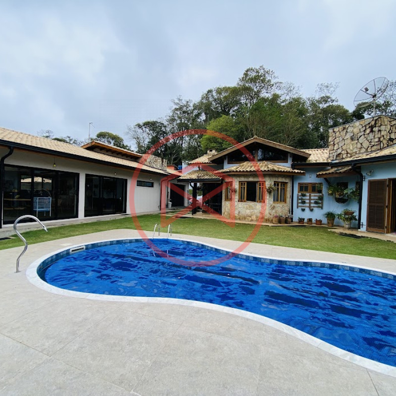 Terreno com 2.100 mts2 contendo 356,00 mts2 de área construída, Casa com 02 dormitórios sendo 01 suite com porta balcão voltada para a piscina e banheiro social, sala 02 ambientes (sala de jantar com lareira e sala de estar), lavabo, cozinha com móveis planejados, dispensa e área de serviço. Casa toda preparada para instalação de aquecimento solar/gás. Espaço gourmet com churrasqueira, forno de pizza, fogão a lenha, com cozinha completa e ampla bancada de mármore e móveis planejados, suíte para hóspedes e sala de TV. Aquecimento solar. Piscina 8 x 4 m em vinil aquecida recém reformada com iluminação interna controlada por controle remoto, deck de piso antiderrapante, cascata e ducha. Sauna seca elétrica automatizada. Banheiro externo. Playground. Redário. Fogo de chão. Quarto de depósito e canil com caixa d’água central de 5.000 litros. Caixa de água de recalque instalada próximo do relógio medidor de consumo com 5.000 litros e automação para bombeamento quando o nível da caixa superior (Depósito) estiver abaixo de 50% do volume. Toda as calhas de coleta de água dos telhados estão canalizadas o que permitirá a instalação de cisterna para reutilização da água. Pomar gramado com árvores frutíferas produzindo. Rampa de acesso com bloquetes sextavados até área das construções. Propriedade com muros e alambrados cercando-a e entrada padrão de chácara. Agende já sua visita!