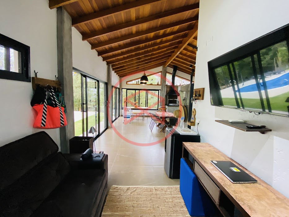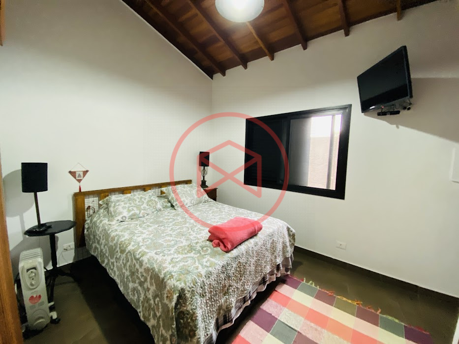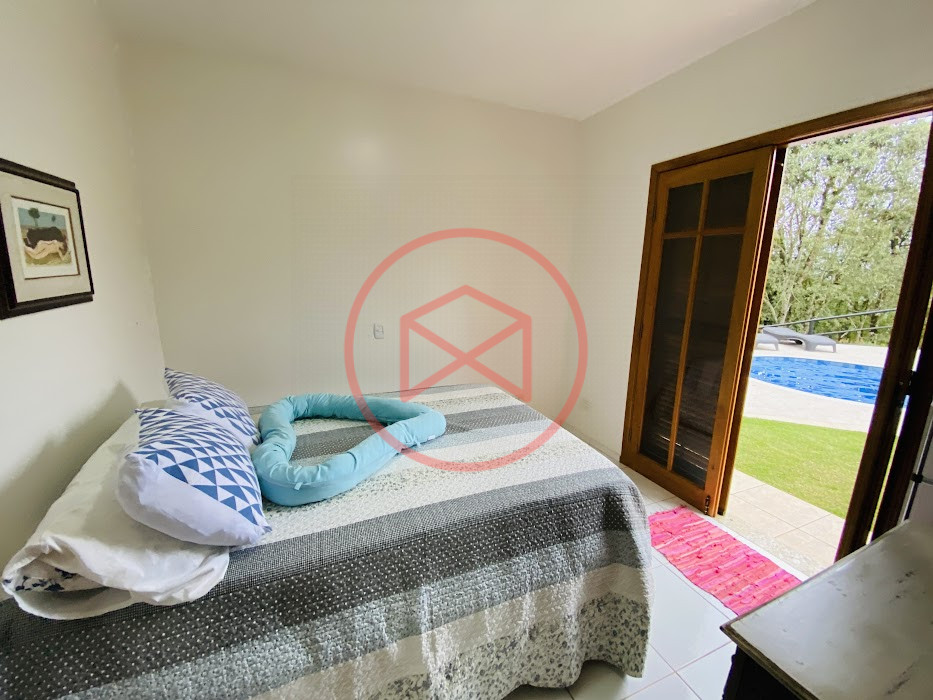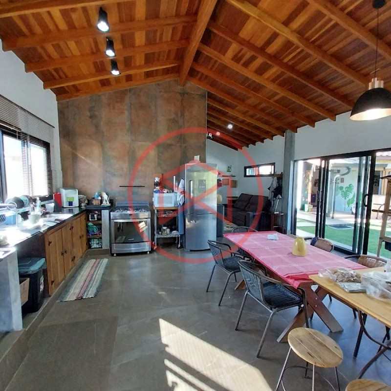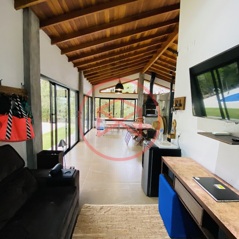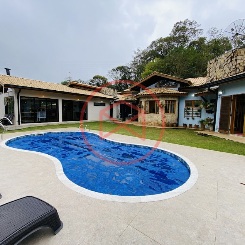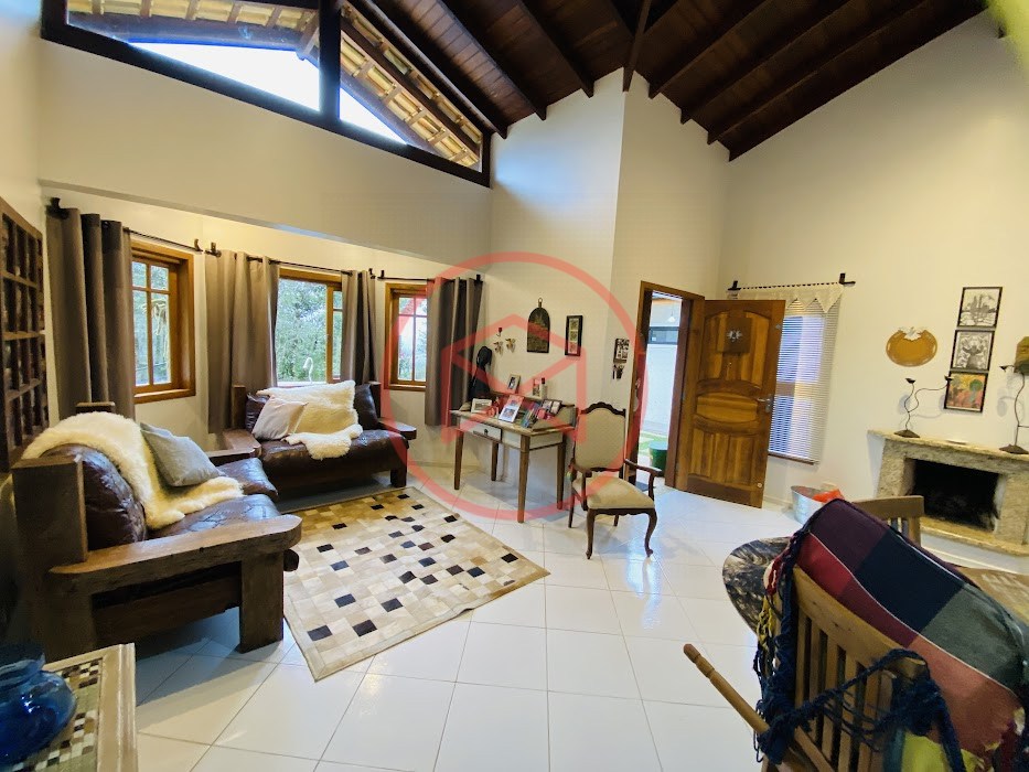 Terreno com 2.100 mts2 contendo 356,00 mts2 de área construída, Casa com 02 dormitórios sendo 01 suite com porta balcão voltada para a piscina e banheiro social, sala 02 ambientes (sala de jantar com lareira e sala de estar), lavabo, cozinha com móveis planejados, dispensa e área de serviço. Casa toda preparada para instalação de aquecimento solar/gás. Espaço gourmet com churrasqueira, forno de pizza, fogão a lenha, com cozinha completa e ampla bancada de mármore e móveis planejados, suíte para hóspedes e sala de TV. Aquecimento solar. Piscina 8 x 4 m em vinil aquecida recém reformada com iluminação interna controlada por controle remoto, deck de piso antiderrapante, cascata e ducha. Sauna seca elétrica automatizada. Banheiro externo. Playground. Redário. Fogo de chão. Quarto de depósito e canil com caixa d’água central de 5.000 litros. Caixa de água de recalque instalada próximo do relógio medidor de consumo com 5.000 litros e automação para bombeamento quando o nível da caixa superior (Depósito) estiver abaixo de 50% do volume. Toda as calhas de coleta de água dos telhados estão canalizadas o que permitirá a instalação de cisterna para reutilização da água. Pomar gramado com árvores frutíferas produzindo. Rampa de acesso com bloquetes sextavados até área das construções. Propriedade com muros e alambrados cercando-a e entrada padrão de chácara. Agende já sua visita!